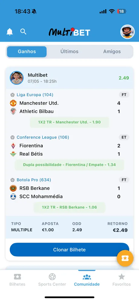 Aplicação mobile que permite aos utilizadores simular apostas desportivas, acompanhar resultados em tempo real e partilhar experiências com amigos e comunidade. Interface intuitiva para gestão de apostas simuladas, tracking de performance e interação social. Design otimizado para experiência mobile-first.